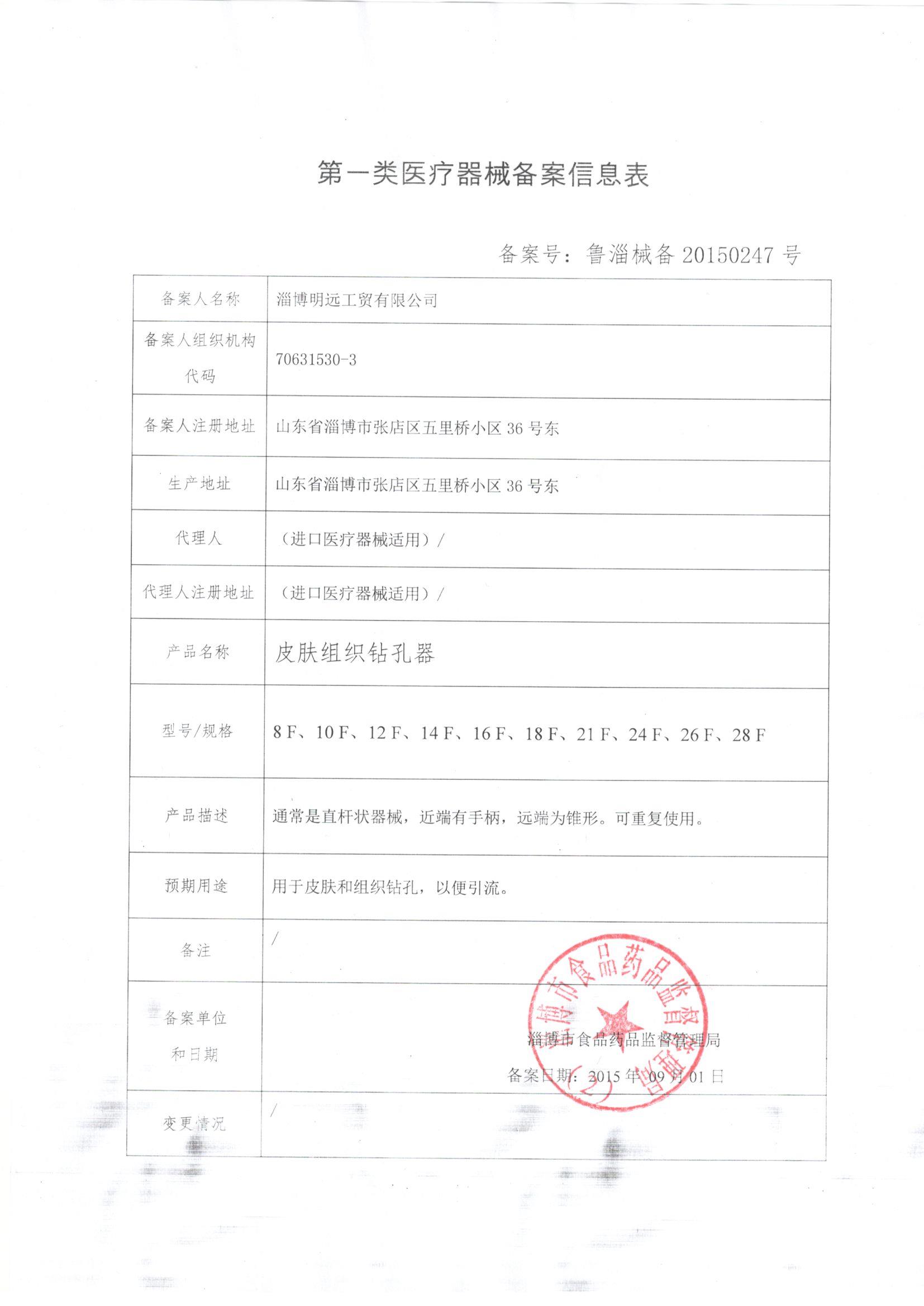 淄博明遠(yuǎn)工貿(mào)有限公司 公司成立于2000年,是二類醫(yī)用穿刺器械專業(yè)生產(chǎn)廠家。公司以微創(chuàng)手術(shù)器械為發(fā)展方向,產(chǎn)品以各類特種穿刺針為主。我們以全方位的管理手段,嚴(yán)格地控制產(chǎn)品品質(zhì).歡迎您選用我公司產(chǎn)品并對(duì)我們的產(chǎn)品提出建設(shè)性的建議和意見.我們?cè)敢獬蔀槟玫纳饣锇楹椭呐笥选?